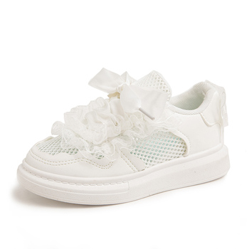 Zapatos para niñas zapatos blancos de malla verano transpirable nuevos zapatos casuales de princesa con lazo para niños